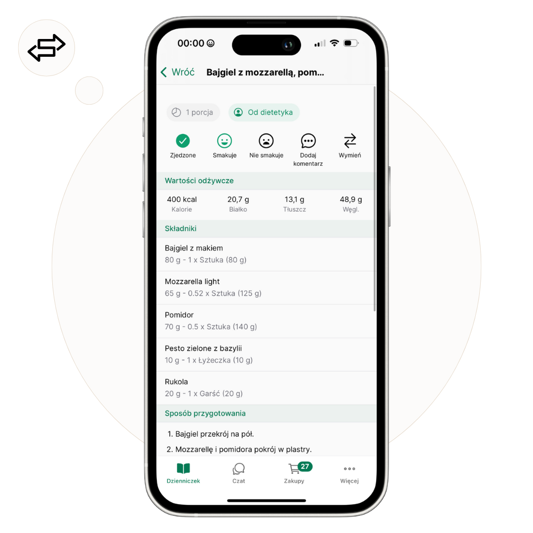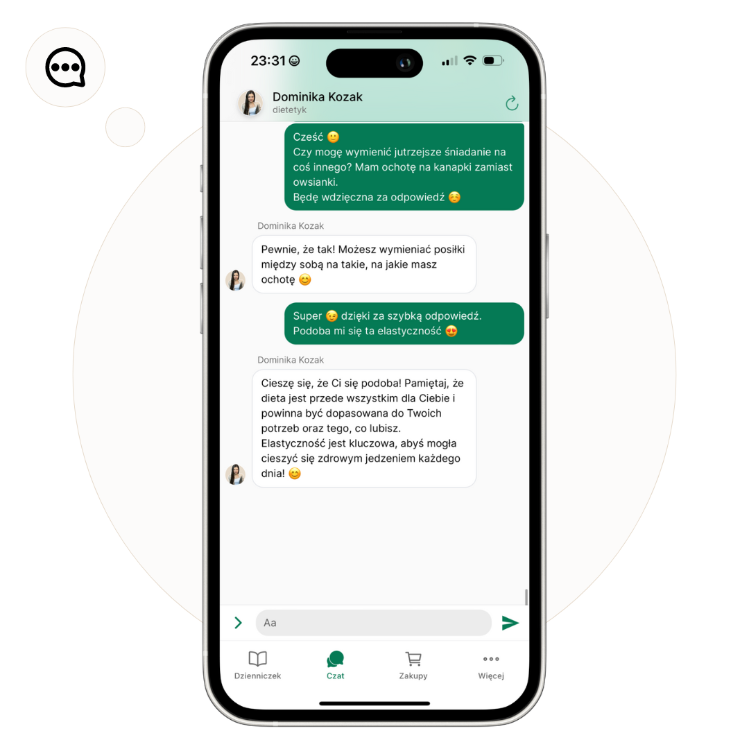 Dieta i czat z dietetykiem dostępna w aplikacji